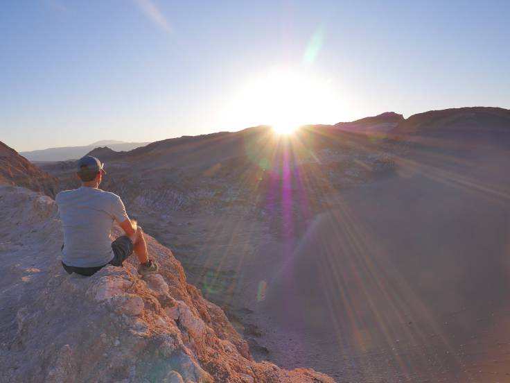 Pour le coucher du soleil, on ira dans un autre spot, un peu plus loin, « Pierda del Coyote« . C’était vraiment super beau, calme, reposant et avec la vue sur le canyon et le volcan Licancabur derrière nous.