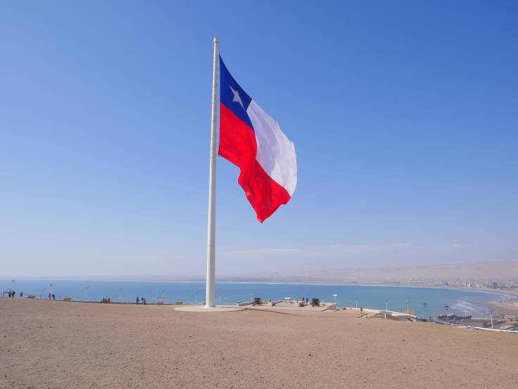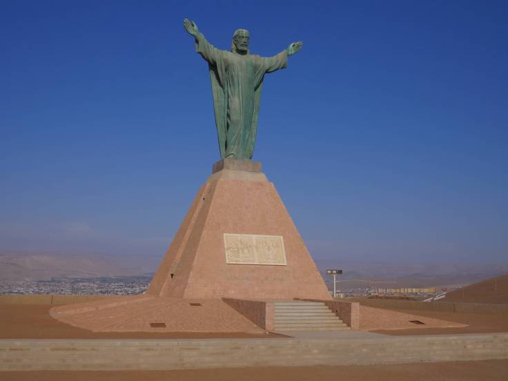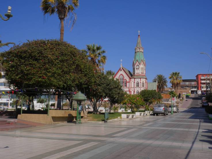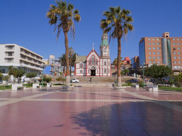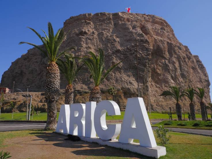Arica n’est qu’une étape de notre journée qui doit nous mener jusqu’à Putre. Mais une escale utile. D’une part, on a pu faire le plein d’essence, car apparemment à Putre il n’y en a pas. Et d’autre part, on a pu voir la cathédrale San Marcos, dessiner par notre Gustave Eiffel national, et également le point de vue, Morro de Arica, sur la ville qui est vraiment sympa, où flotte dans les airs le plus grand drapeau du Chili.