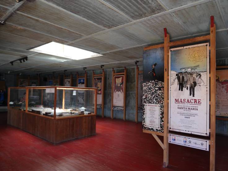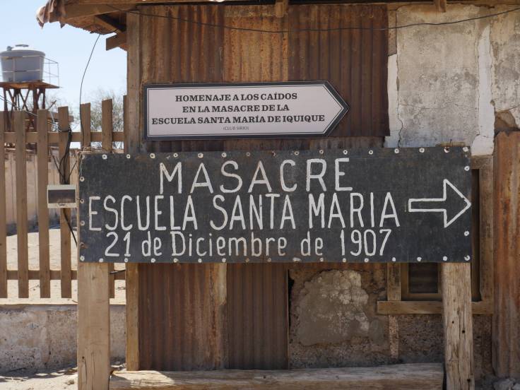 Ensuite deux choses hyper intéressantes. La première c’est le tragique Massacre du 21 décembre 1907. Les ouvriers étaient de plus en plus mal payés et n’avaient plus assez pour vivre. Ils se sont donc rebellés contre une énième taxe du gouvernement. Cela n’a pas plu au Président Pedro Montt qui envoya le général Renard et toute une armée pour restaurer l’ordre. L’ensemble des habitants de Humberstone a été regroupé dans l’école et fusillé. Triste…