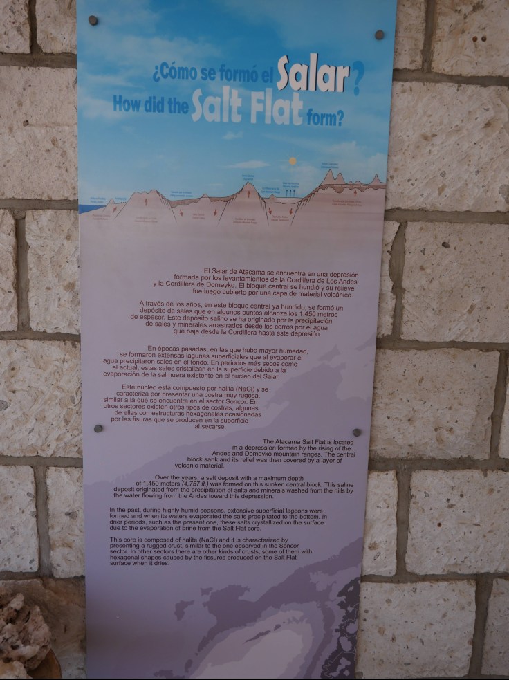 La seconde, c’est le musée sur le sel. C’était super instructif et super bien fait. On apprend par exemple qu’au 19ème siècle, le chili exportait environ 84% du sel mondial et qu’aujourd’hui, le pourcentage est descendu à 0,4%, principalement à cause de la Première Guerre Mondiale qui a désorganiser les échanges commerciaux. Au final, on ne sera pas resté 10min mais 1h30 !