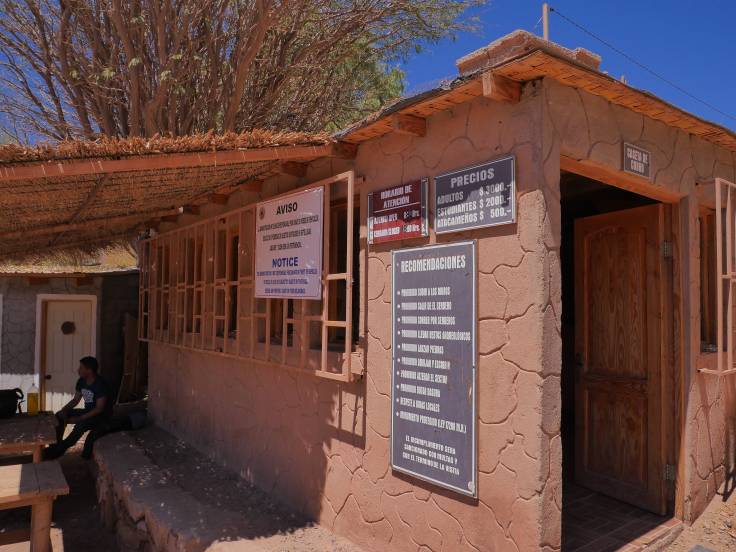 Vers 15h, on arrive à San Pedro, dans notre hôtel, où il fait une chaleur de dingue dans la chambre, avant d’aller faire un tour dans le centre ville. On passe à l’office de tourisme, et la dame nous dit que la Vallée de la Lune est fermée aux particuliers l’après-midi et ouverte seulement aux « Tours « . Dommage, c’est ce qu’on avait prévu de faire…
