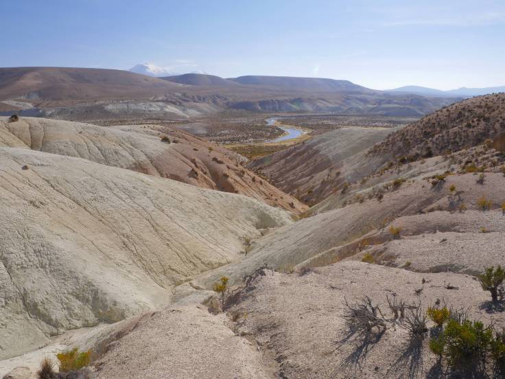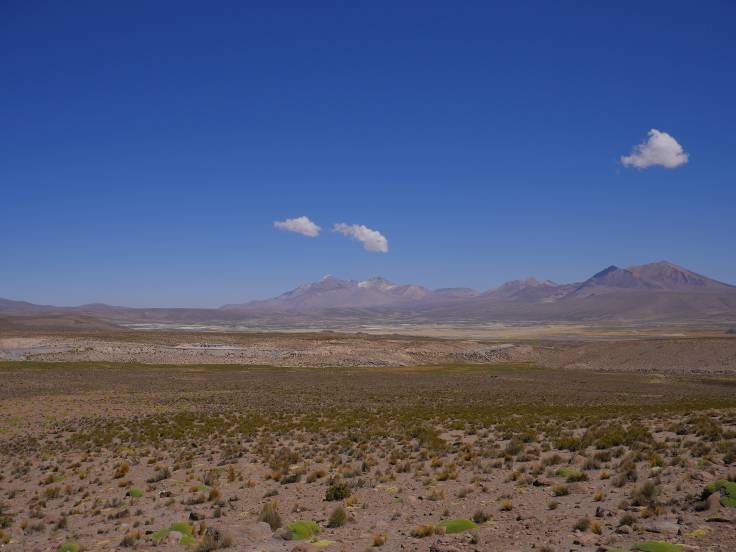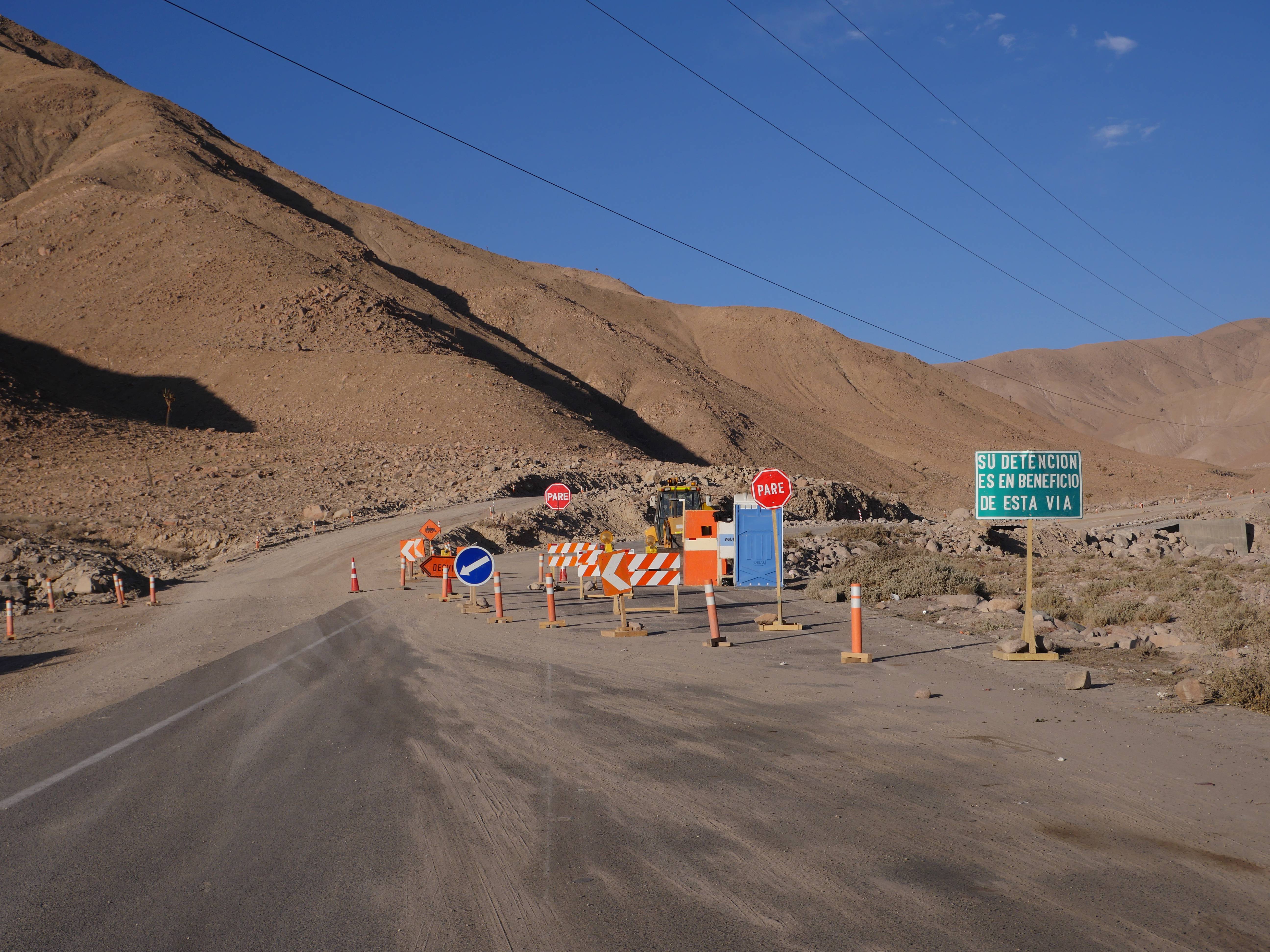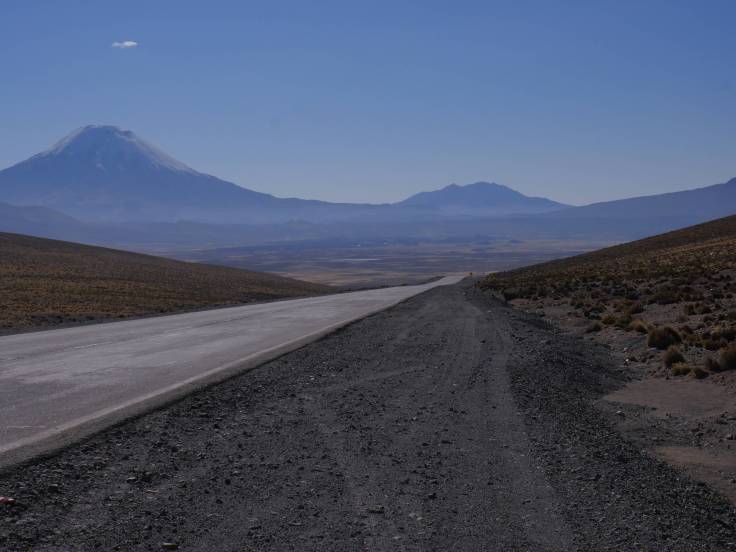 Il ne nous restait plus « que » 160km pour rejoindre Putre. Mais bordel que ce fut long !!! Déjà parce que c’est de la route de montagne, qui zig et qui zag tout le temps. Mais le pire c’était les travaux sur les routes. On a bien dû perdre 30 ou 40min ! C’était long d’attendre notre tour et de voir les dizaines de camions passer à deux à l’heure. On a bien cru qu’on arriverait jamais.