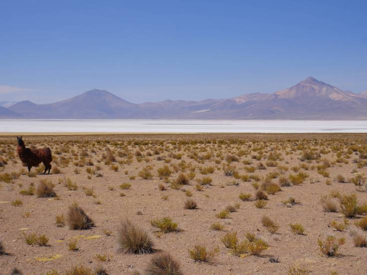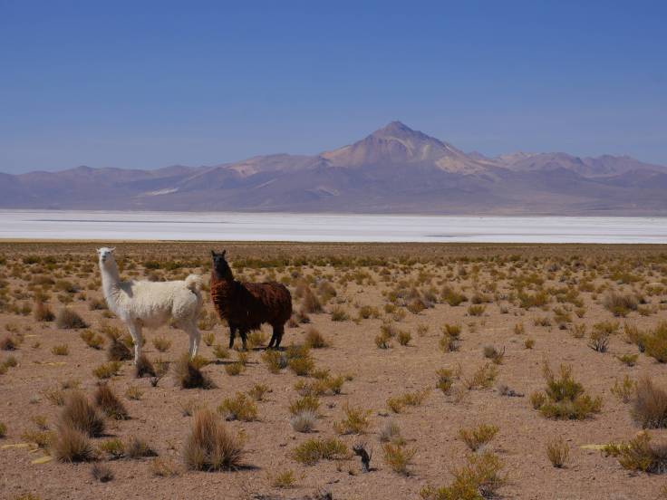 Le Salar est sublime car complètement différent de celui de Uyuni en Bolivie. Ici, le désert de sel est entouré de volcans, de 5000m à 6000m d’altitude, il y a des lamas partout, des vigognes et même des autruches !! Mais impossible de les prendre en photos, elles sont trop rapides !