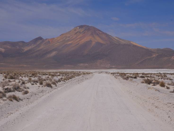 On reprend donc la même route que la veille jusqu’à la bifurcation vers le Salar de Surire. Là, terminé le goudron, place au chemin de terre, mais ça va, c’est pas si chaotique qu’on pourrait le penser. Le chemin est même dans l’ensemble plutôt bien.