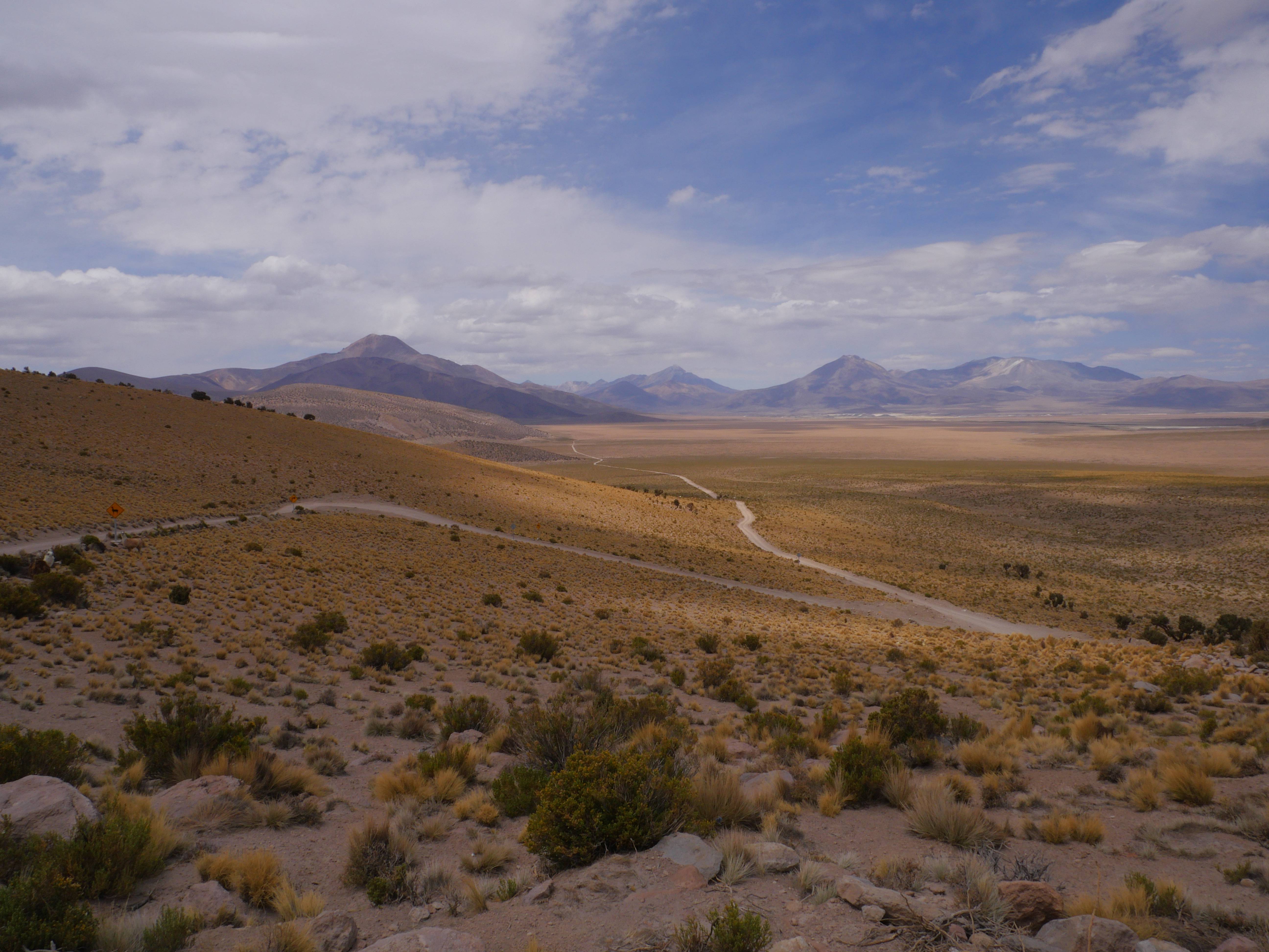 Ensuite, direction le sud ! Au lieu de retourner au nord à Putre puis Arica, et refaire la même route que pour venir, on préfère prendre un autre chemin. Et là, attention les yeux. J’ai eu plusieurs fractures de la rétine tellement c’était INCROYABLE !!! Même en Australie, c’était pas si beau, c’est dire (enfin je sais pas, kif kif :-)). Se dire que l’on roule dans un désert de montagnes, avec personne à 100km à la ronde, ça donne un peu de piquant 🙂 C’est clairement pas le moment d’avoir un ennui mécanique !!! La Gibb River Road a un sérieux concurrent !!
