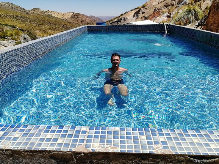 Sur la route du retour, on a fait une petite halte au « Termas de Jurasi« . Comme d’habitude, on pensait y rester 20min et repartir. Encore perdu ! On y est resté presque 2h ! C’était top top top top!!! On a d’abord commencé par le bain « piscine » à 35 degrés, puis un autre bassin à 32 degrés avant de finir par la cerise sur le gâteau.
