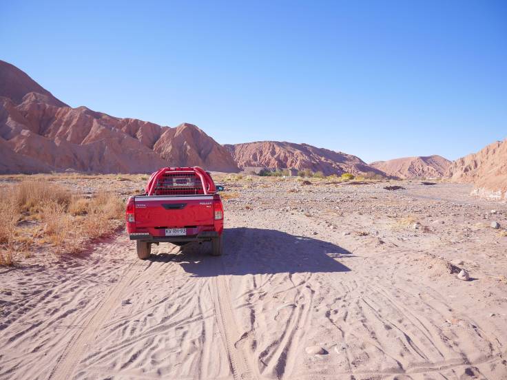 C’est aux alentours de 13h, légèrement énervés, que nous voilà partis en direction de San Pedro de Atacama, à 100km au sud, à bord de notre super bolide. C’est presque le même que celui qu’on avait en Australie, à l’exception qu’il est moins bien 🙂