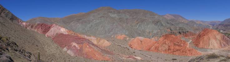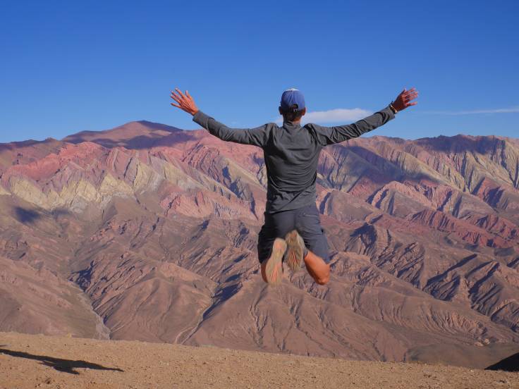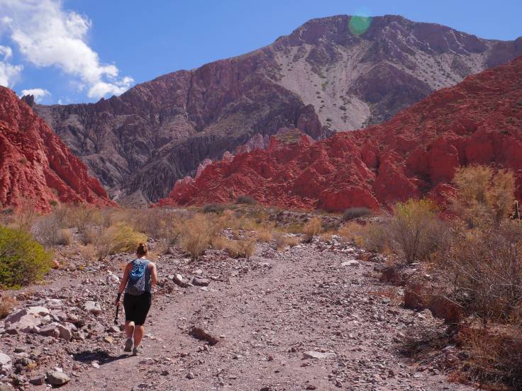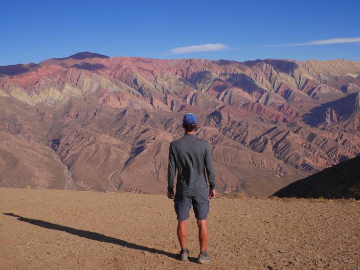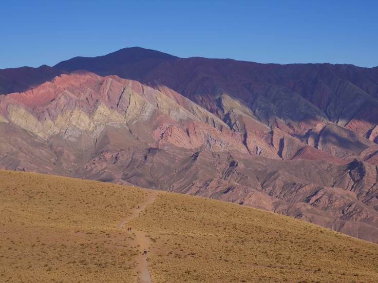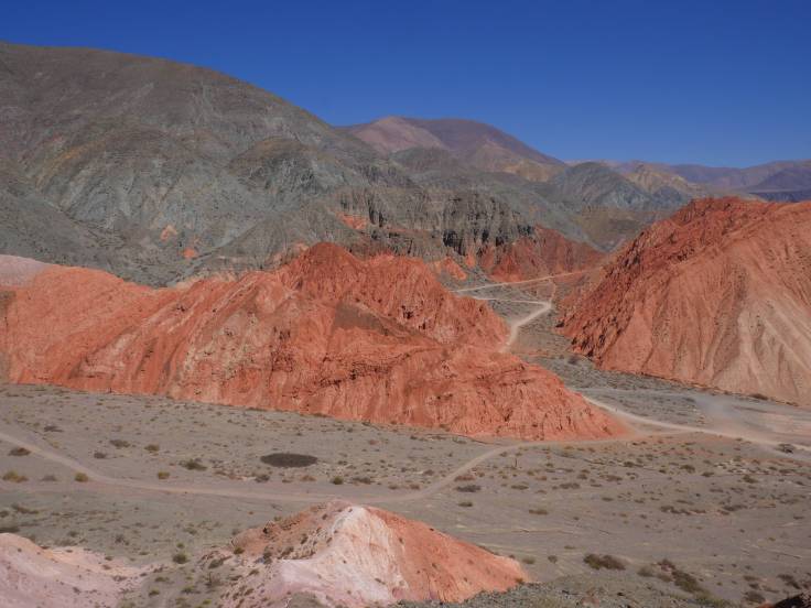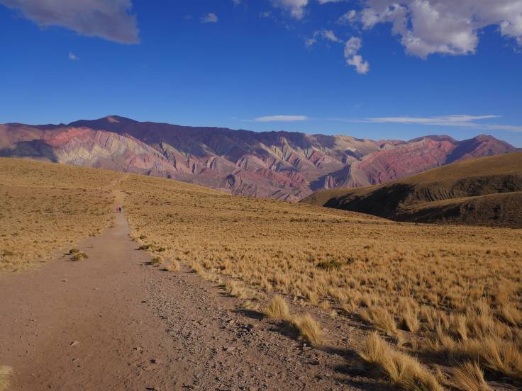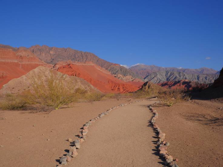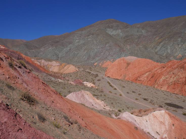Autrement dit, une éternité à l’allure que l’on a. Aller-retour, il nous aurait fallu au moins 2h30. Ça monte dure et Ria n’est pas au top de sa forme. Les glaces vanille/chocolat de Tilcara ont eu raison d’elle… 🙂 On réfléchit longuement et finalement on rebrousse chemin. On n’a pas envie de se dépêcher et faire la même erreur que la veille. Du coup, en faisant demi-tour maintenant, on peut prendre notre temps et profiter de la vue, qui est déjà vraiment superbe, et faire des photos.
