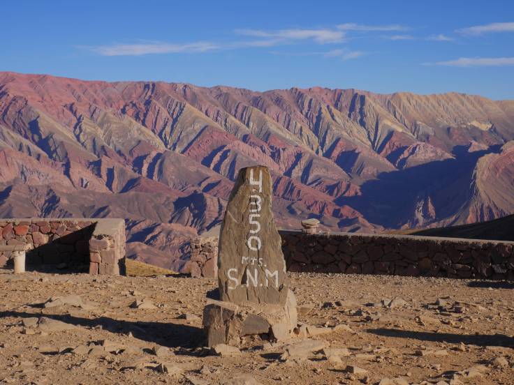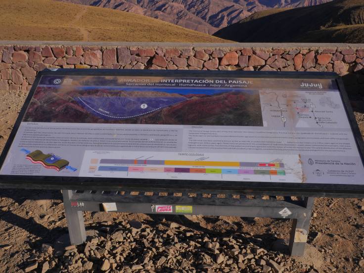 C’est vers 17h20 que l’on arrive au mirador, à 4350m d’altitude, devant une montagne d’une autre époque. C’est I-NI-MA-GI-NA-BLE de voir autant de couleurs !!! On dirait réellement une peinture. Ces montagnes se sont formées il y a plus de 600 millions d’années ! Et toutes les différentes périodes (Jurassique, Crétacé, Trias,…) ont laissé une trace différente sur la roche. En gros, chaque couleur sur la montagne correspond à la couleur d’une ère (voir la photo du tableau en zoomant à fond).