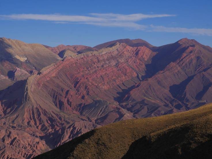 On a fait une halte à Maimara, au mirador El Monolito. Et là aussi, la vue défie l’imagination. Une immense chaîne de montagnes avec de multiples couleurs. On dirait réellement une peinture.
