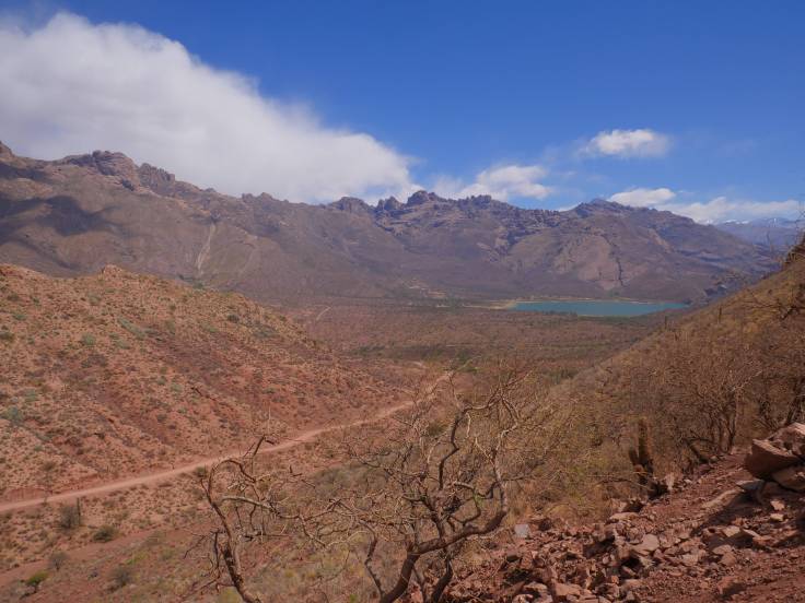 Notre premier arrêt de la journée a été au point de vue « Mirador sobre de laguna » du lac Brealito. On a pour cela emprunté une route très très loin d’être optimale pour notre petit carrosse. Et vas-y les cailloux, les trous et les bosses. Le pire, c’est que c’est un aller-retour… Génial… 😦 Tout ça pour arriver devant un panneau « Descente dangereuse« . Déjà qu’on était pas très rassuré avant, alors là pas du tout ! On laisse donc la voiture et on continu à pied d’où on peut apercevoir la lagune plus loin. Sympa mais pas non plus à tomber à la renverse, et cela ne vaut certainement pas les 1h30 de chemin misérable. En plus, un méchant cactus m’a volé ma casquette…