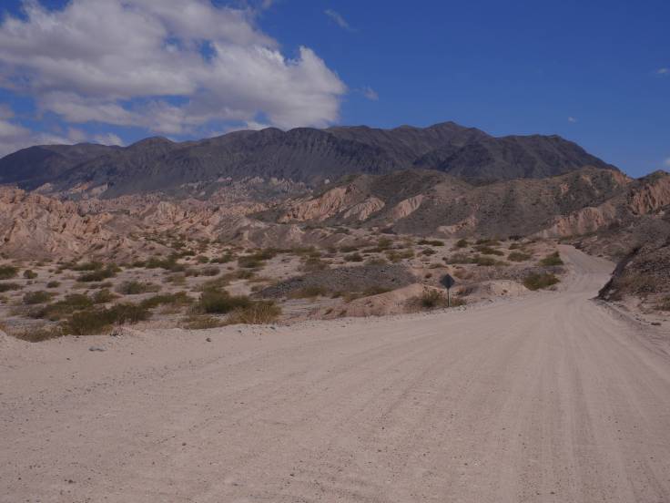 Pour retourner à Salta, on a deux choix. Soit on fait demi-tour, sur la même route, et on a 60km de plus. Soit on prend un « raccourci » sur un chemin de terre pendant une durée indéterminée. Pif paf pouf, le choix est vite fait. On ne va pas faire subir à notre voiturette cette épreuve pour son dernier jour. Ça sera donc la route de montage !