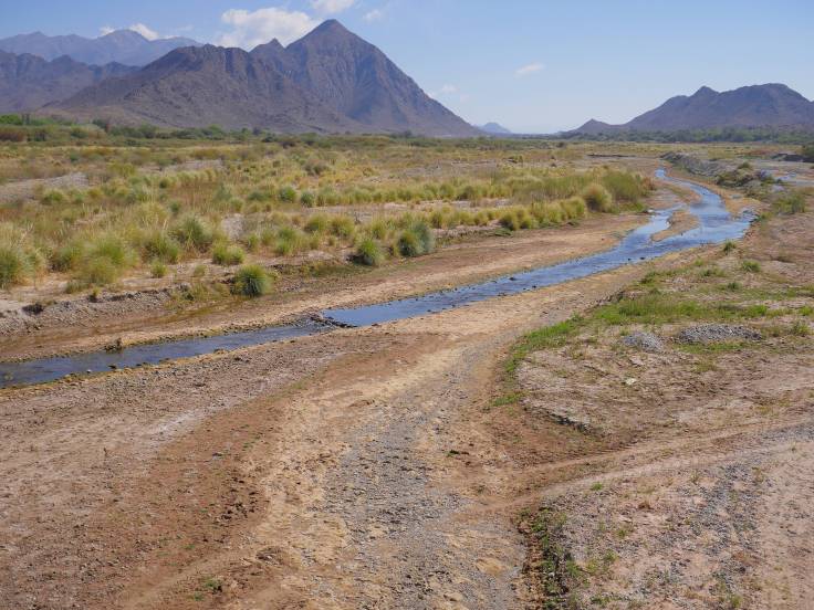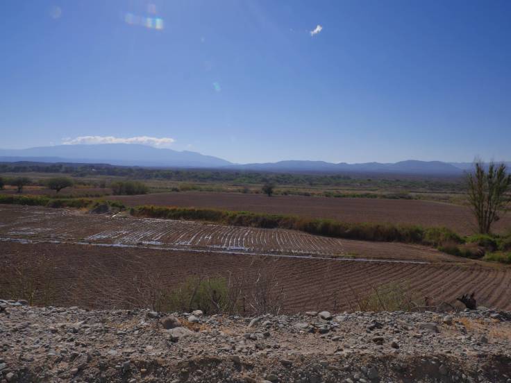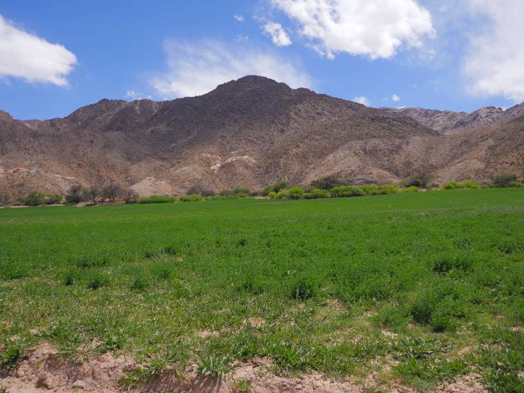 Autant la vieille on avait eu presque que de la bonne route bitumée, excepté une trentaine de kilomètres, autant là pas-du-tout ! La fameuse Ruta 40 n’est qu’un chemin de terre interminable, pendant 150km. Gibb River Road si tu nous entends on pense à toi. Le décor a fait place à une étrange association : des montagnes désertiques et juste à côté plein de champs plus vert que nature. Très surprenant.