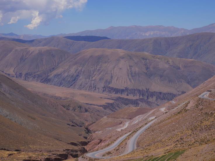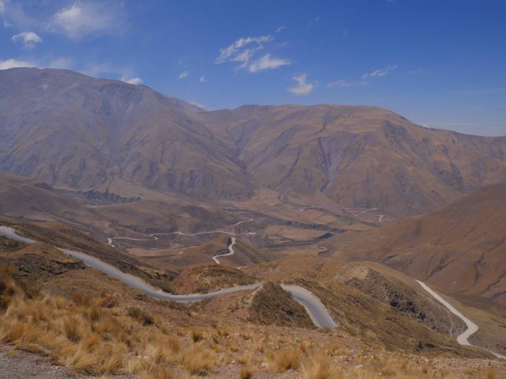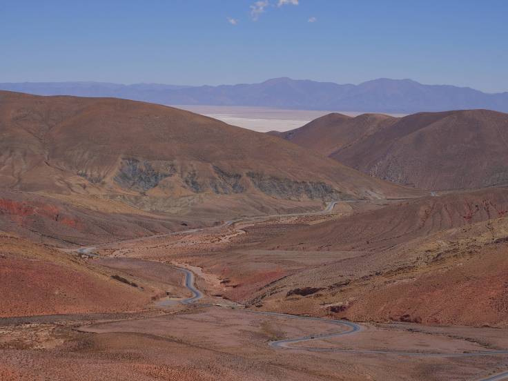 Ensuite, après un ultra fameux sandwich saucisson, on prend la route en direction de Salinas Grandes, à environ 60km. La route est vraiment superbe mais longuuue ! Route de montagne oblige, il y a une succession de zig et zag avec virage en épingle. En plus, dépasser les camions sur ces routes n’est pas des plus aisés.