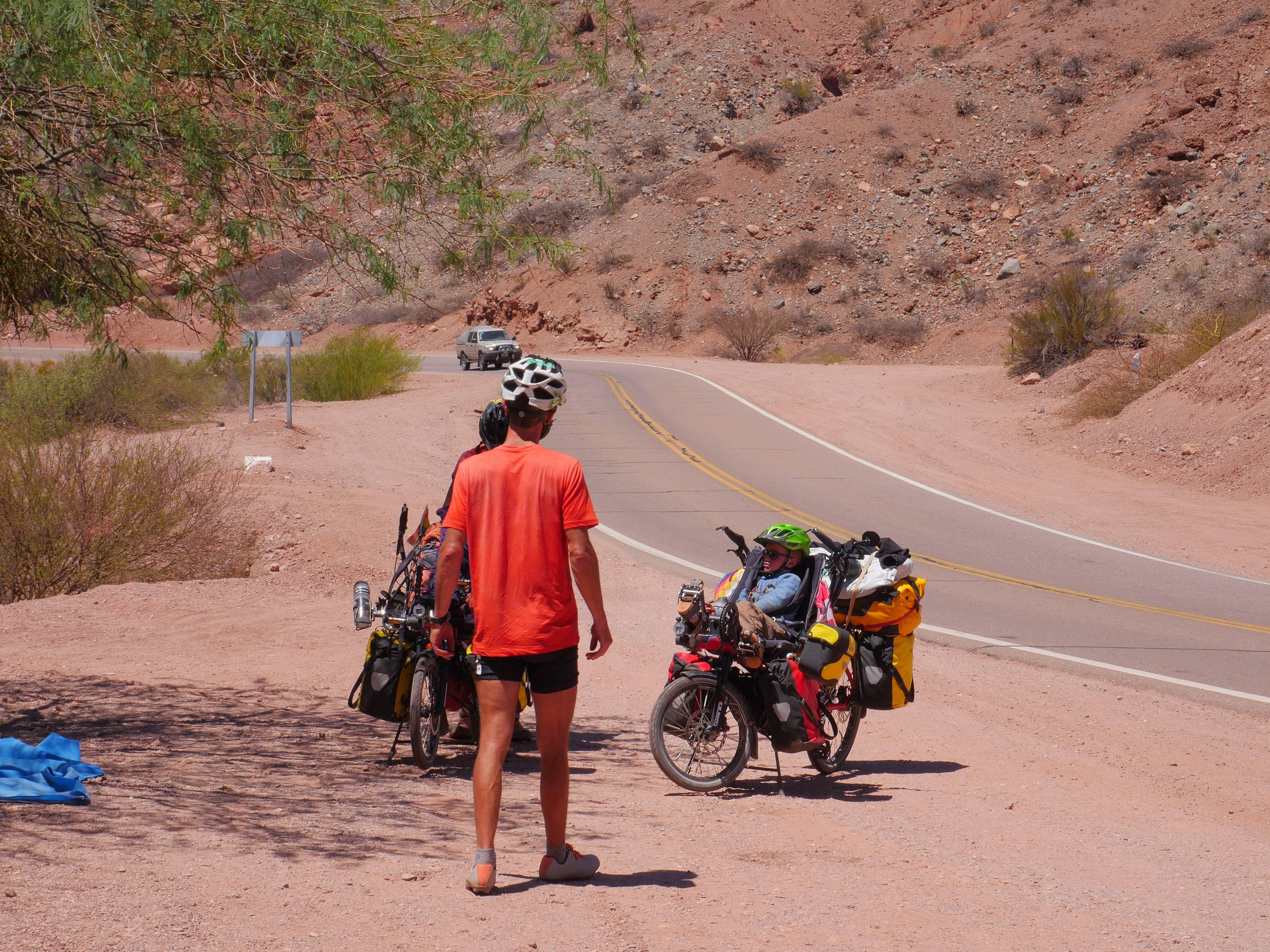 Ensuite El Fraile, sans trop d’intérêt. En s’arrêtant, on a vu un couple en vélo avec deux petits enfants dans des sièges à l’avant. Autant c’est courageux de faire ce périple en vélo. Autant c’est réellement inconscient d’embarquer des enfants si petits dans ce périple sous cette chaleur !