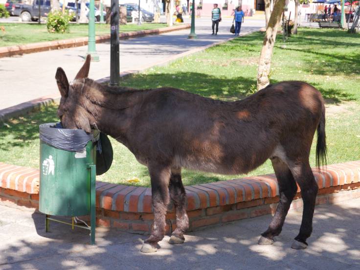 C’est donc vers 14h30 que l’on est rentré bien rincé. Le temps de nettoyer un peu les chaussures et nous voilà repartis dans le centre ville, qui est très charmant avec la grande place, pour visiter un peu. On a pas trop compris pourquoi un âne était en ville et faisait les poubelles, mais c’était amusant 🙂