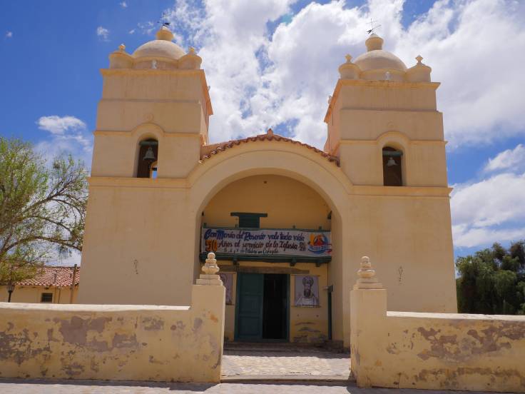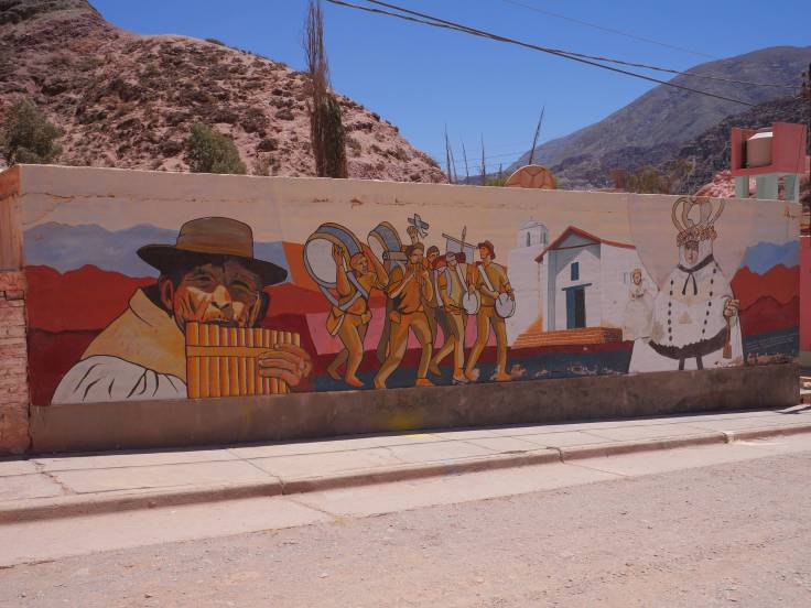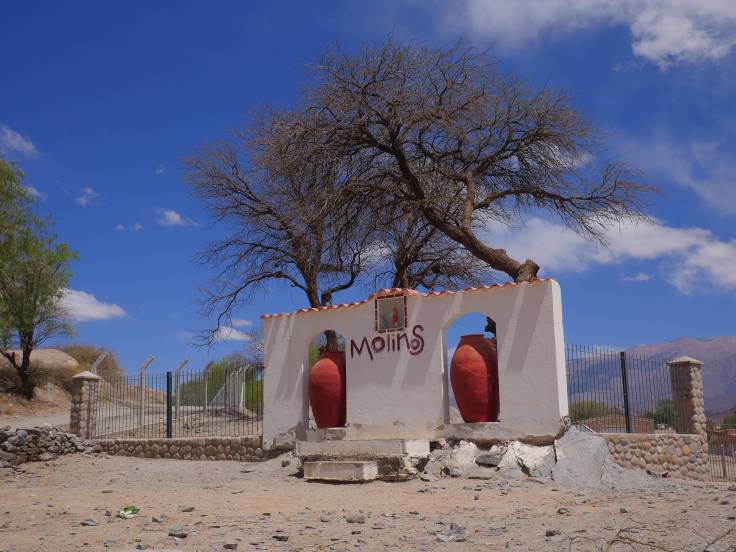 Après un passage éclair à Molinos, pour voir une église avec un toit en bois de cactus, on a continué notre route vers Angastaco, où on a repris un monsieur en stop. Il lui restait 20km à faire le pauvre. Il s’appelait Santurini ou quelque chose comme ça. C’est parfois réellement difficile de comprendre ce que disent les Argentins, car ils parlent vite et n’articulent pas beaucoup.