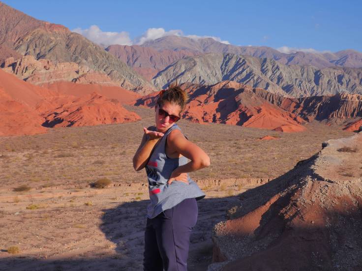 On décide tout de même de continuer vers la Quebrada de Las Senoritas car apparemment c’est joli. Alors oui, c’est beau et on peut voir différentes couleurs sur les montagnes, mais bon… Une fois de plus, le chemin n’est pas indiqué et il faut marcher dans les cailloux la plupart du temps.