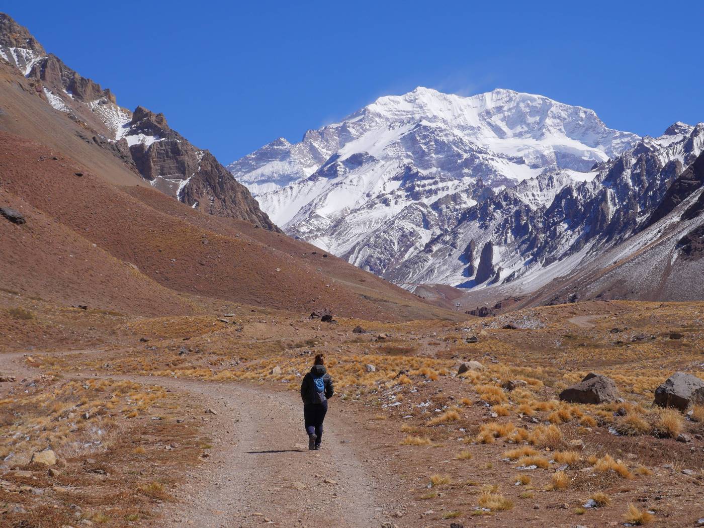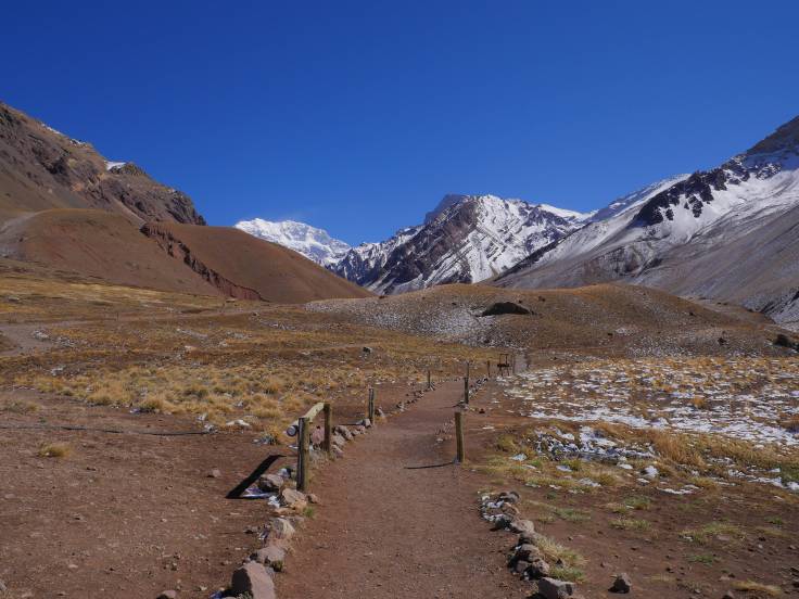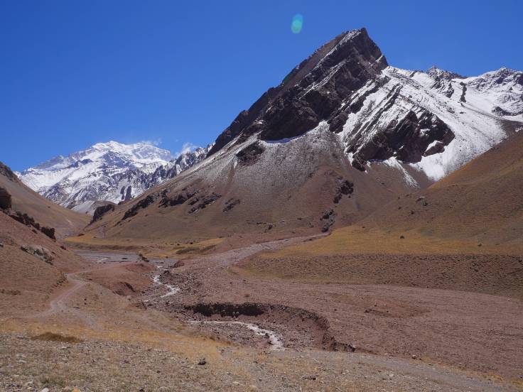 Un décor de rêve et une balade d’un autre temps. On peut voir en permanence le sommet sud de l’Aconcagua, qui culmine à 6962m d’altitude. Cette Cordillère des Andes m’étonnera toujours.