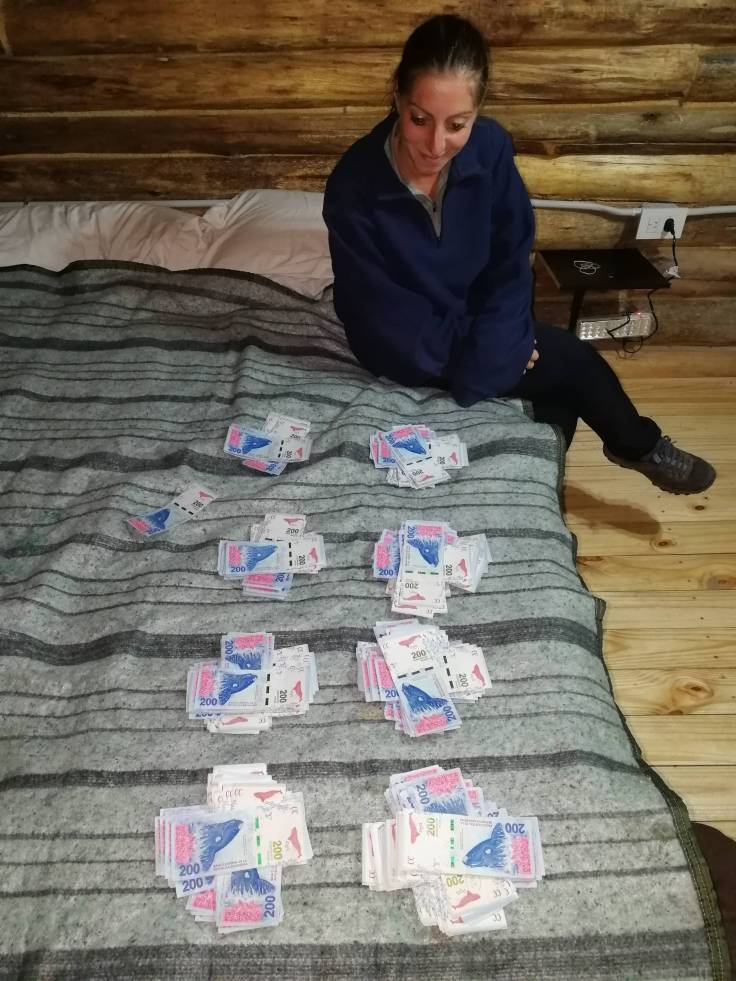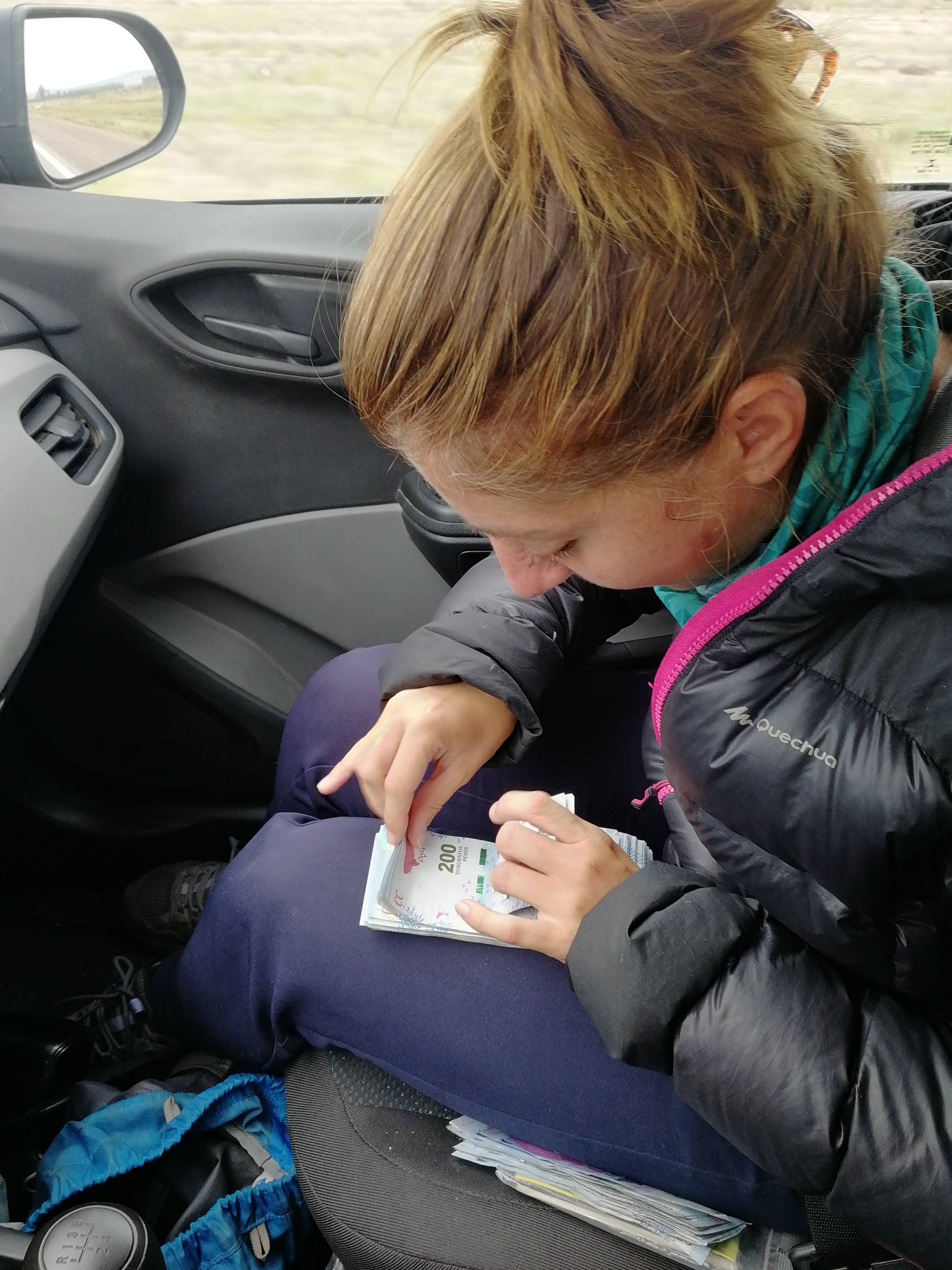 Coup de bol, il n’y a absolument personne dans l’agence, du coup on va vite. Et heureusement, car avec la somme d’argent que l’on retire, 1600 euros ou 102 000 pesos, on aurait pas été serein !! Nous voilà riche ! Enfin, ce n’est qu’une vue de l’esprit… 🙂