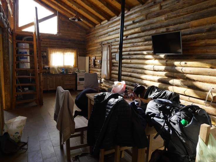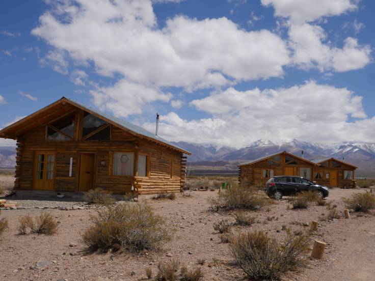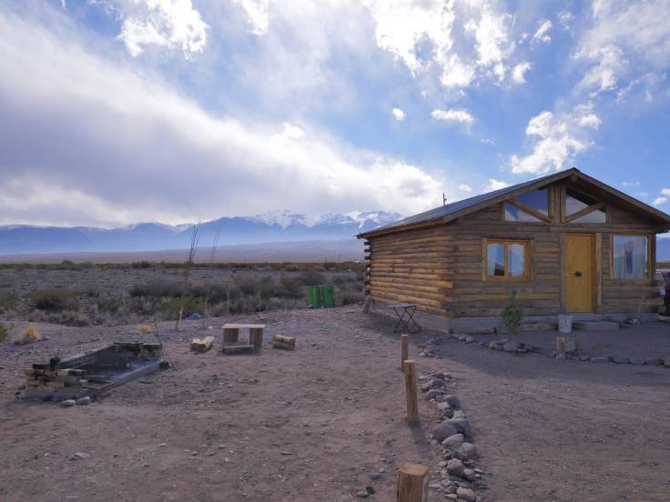 Une fois arrivé, on se rend à notre hôtel… Enfin THE hôtel !! Trois petits chalets en dehors de la ville, perdu au milieu de nulle part, et avec une vue imprenable sur les montagnes. Que demander de plus ??? A coup sûr, l’un des meilleurs endroits où on a dormi. C’est beaucoup trop grand pour nous deux mais vu les hôtels minables que l’on a pu faire, on ne va pas dire non !! En plus, le propriétaire, Rocio, est super gentil et nous a aidé à allumer la cheminée 🙂
