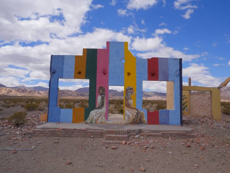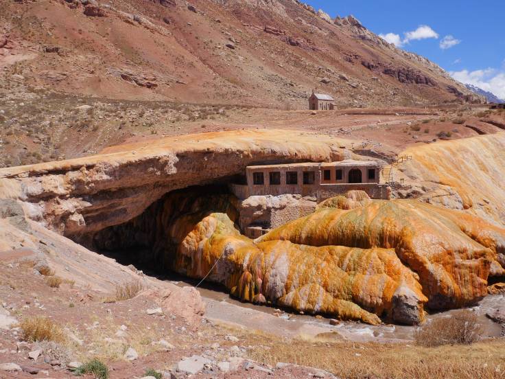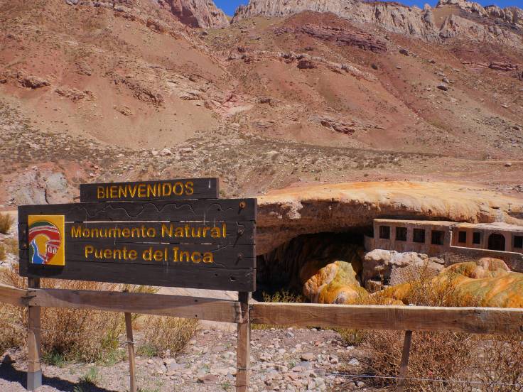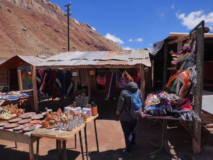 Une fois cette visite enchanteresse terminée, on est allé au village Puente del Inca, où comme à notre habitude, on n’a pas pu résister à l’achat de quelques souvenirs. Nos sacs à dos vont nous haïr 🙂 Ce village, minuscule, abrite une formation rocheuse vraiment intéressante et surprenante. C’est l’eau salée qui a donné cette couleur à la pierre. Dingue non ?