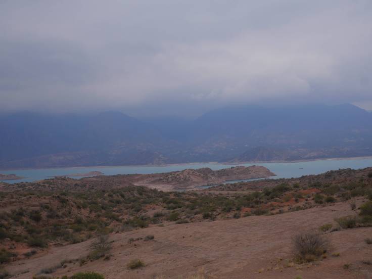 Une nuit pas si reposante que ça finalement. En cause, la très forte pluie qui s’est abattue, faisant un bruit monstre sur le toit du chalet. On a limite cru qu’il allait s’effondrer. Et si on rajoute les orages et les éclairs… Un petit-déjeuner sympa préparé par notre hôte, dans le salon où il y avait pleins d’affiches de films et de groupes de musique, et l’on prend la route en direction des thermes de Cacheuta, en profitant une dernière fois du merveilleux lac de Potrerillos.