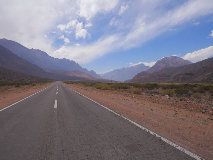 La route qui mène à Upsallata n’a rien à voir avec celle que l’on a prise le matin. Des montagnes et une belle route. C’est juste dommage qu’il y ait autant de nuages.