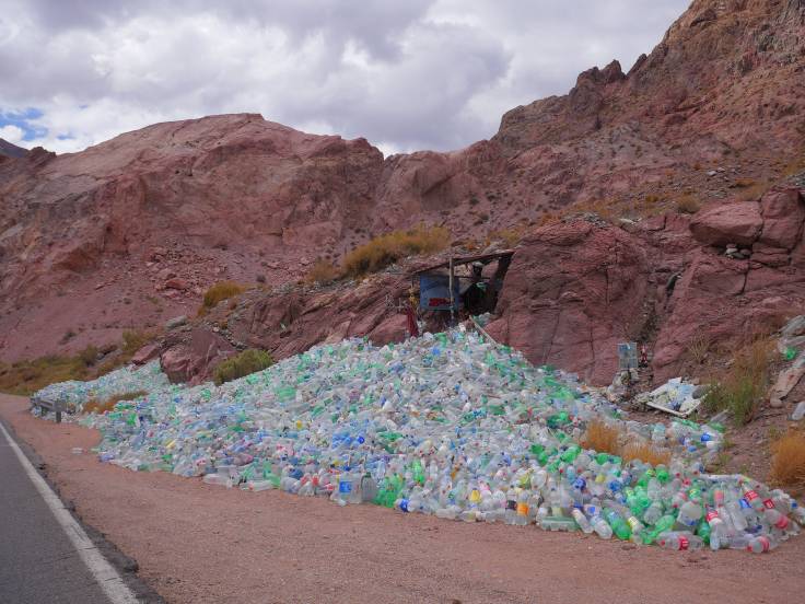 C’est aujourd’hui que l’on quitte Upsallata. Avec un peu de regret car on était super bien installé et la vue était sublime. Enfin, oui c’est magnifique si on met de côté les énormes montagnes de bouteilles en plastique qui sont sur le bord de la route. C’est OUF ! 😦