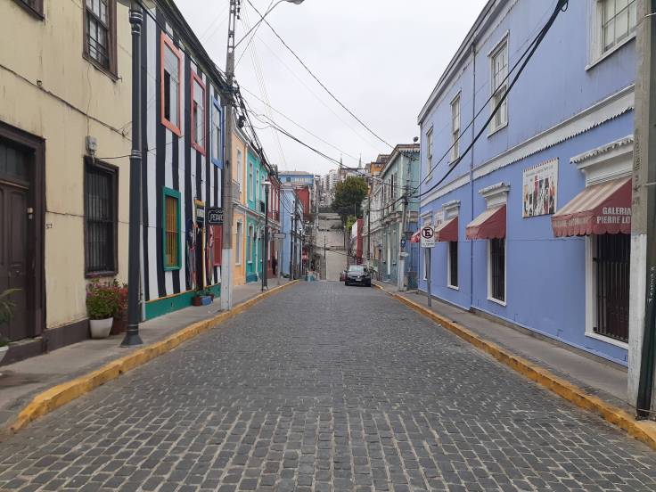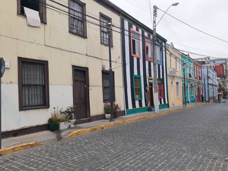 Du coup, c’est vraiment chaud chaud chaud quand on arrive à Valparaiso à 18h, et que le couvre-feu commence à… 18h! Le terminal de bus est à 2.5km de notre hôtel, autrement dit une éternité à pied et avec nos gros sacs sur le dos !