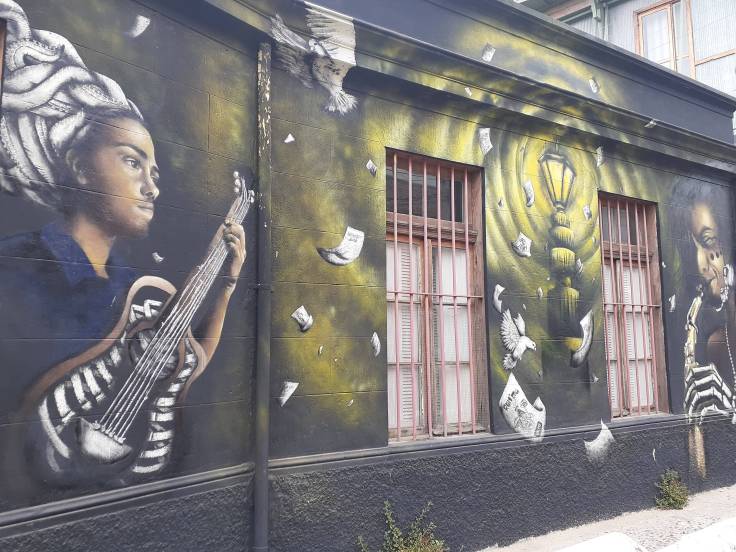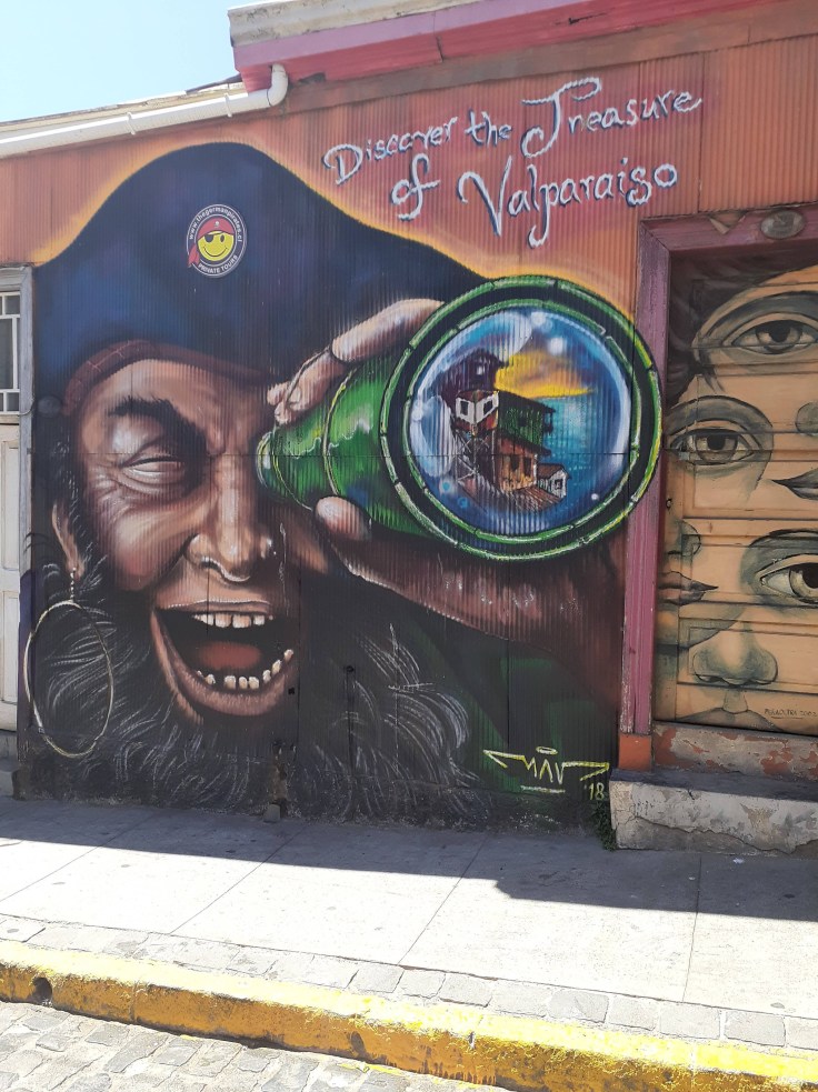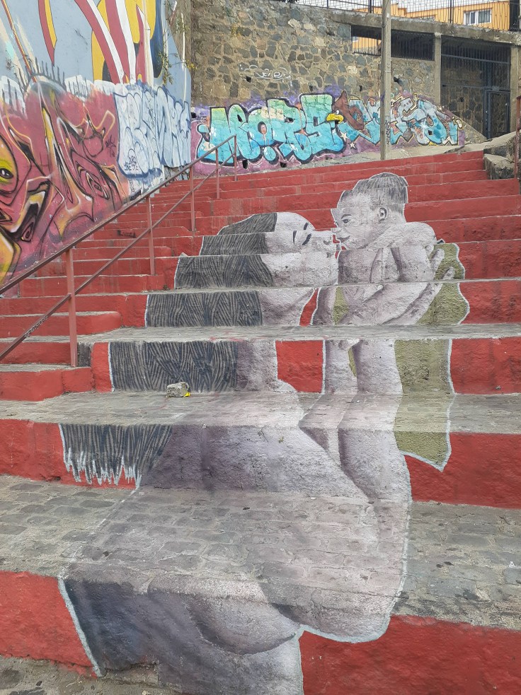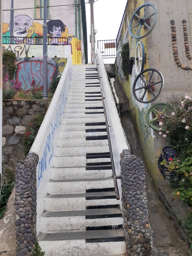 On a marché ensuite jusqu’au quartier Cerro Alegre, un peu plus vieux mais avec des graffitis tout aussi beaux.