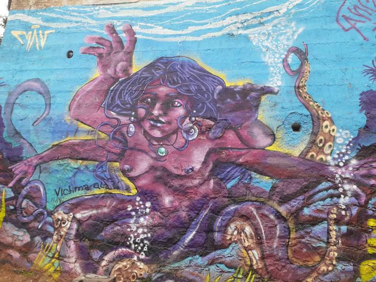 Pendant le peu de temps qu’il nous reste, on aura tout de même pu faire une petite balade. Tout d’abord dans le musée à ciel ouvert. C’est en fait plein de petites ruelles, pas forcément hyper accueillantes, dans lesquelles il y a tout un tas beaux graffitis sur les murs. Certains sont vraiment superbes !