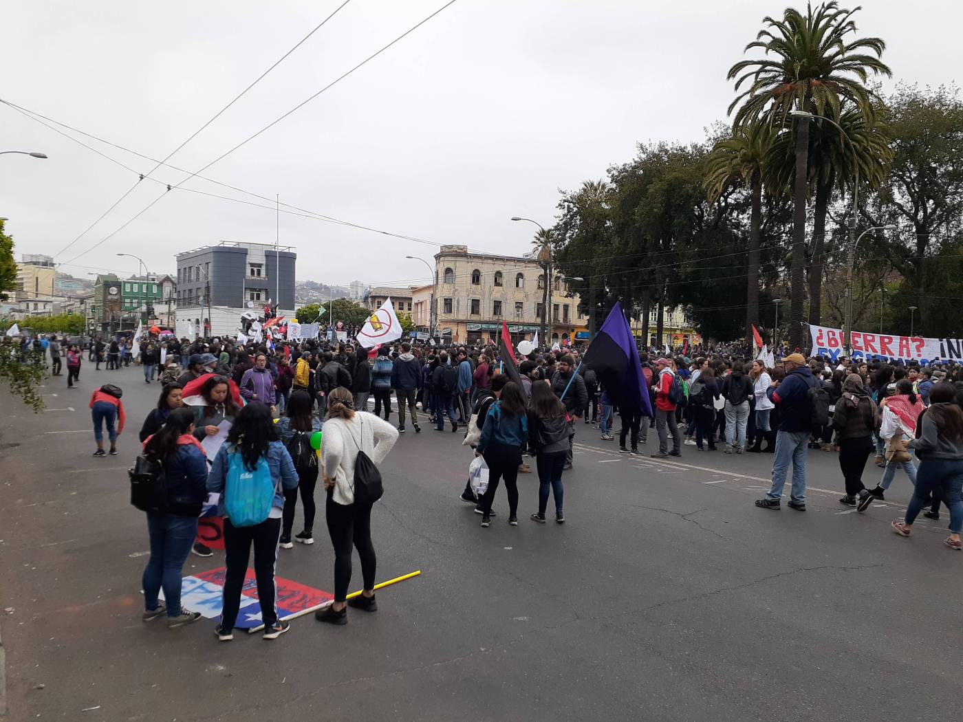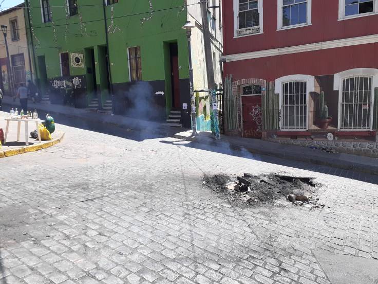 Après un « petit » voyage de 9h de bus, c’est à 18h que l’on arrive, dans un contexte très difficile, à Valparaiso. En effet, depuis trois jours maintenant, de violents affrontements ont lieu, dans différentes grandes villes du Chili, entre des manifestants et les forces de l’ordre (pillages, rues barricadées, immeubles incendiés, vitrines cassées, …). La raison ? Le prix du ticket de métro qui est passé de 800 pesos (1 euro) à 830 pesos (environ 1,1 euro). Cela intervient dans un contexte social déjà difficile où le coût de vie est bien trop élevé pour les locaux. Ces incidents ont déjà coûté la vie à 11 personnes. Pour répondre aux troubles, le Président Pinera a décidé de déployer l’armée dans les rues et d’instaurer un couvre-feu. C’est la première fois, depuis la fin de la dictature de Pinochet (1990), que l’armée patrouille dans les villes. Tous ces événements ressemblent à ce qui s’est passé en France à la fin de l’année 2018.
