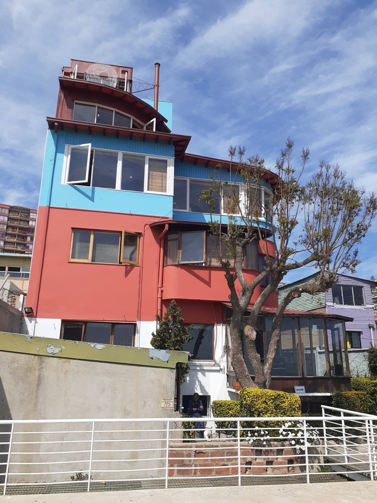 On sera également allé à La Sebastiana (Casa de Pablo Neruda). L’endroit est un peu dans les hauteurs et au calme, cela contraste avec l’agitation dans le centre ville. Une visite très intéressante avec un audio guide en français. Pablo Neruda était un poète du 20ème siècle et qui est considéré comme l’un des quatre grands de la poésie chilienne. La maison, sur plusieurs étages, est vraiment sympa et domine toute la ville. Lorsqu’il cherchait une maison à Valparaiso, Pablo Neruda fit une étrange demande à ses amis. « Il souhaitait une maison dans les hauteurs de la ville mais pas trop haut, pas dans le centre mais pas trop loin non plus, au calme mais pas trop non plus, grande mais pas trop non plus,…« . Pas du tout relou le type ! Il n’aurait aucune chance de trouver une maison dans l’émission « Recherche Maison ou Appartement » !