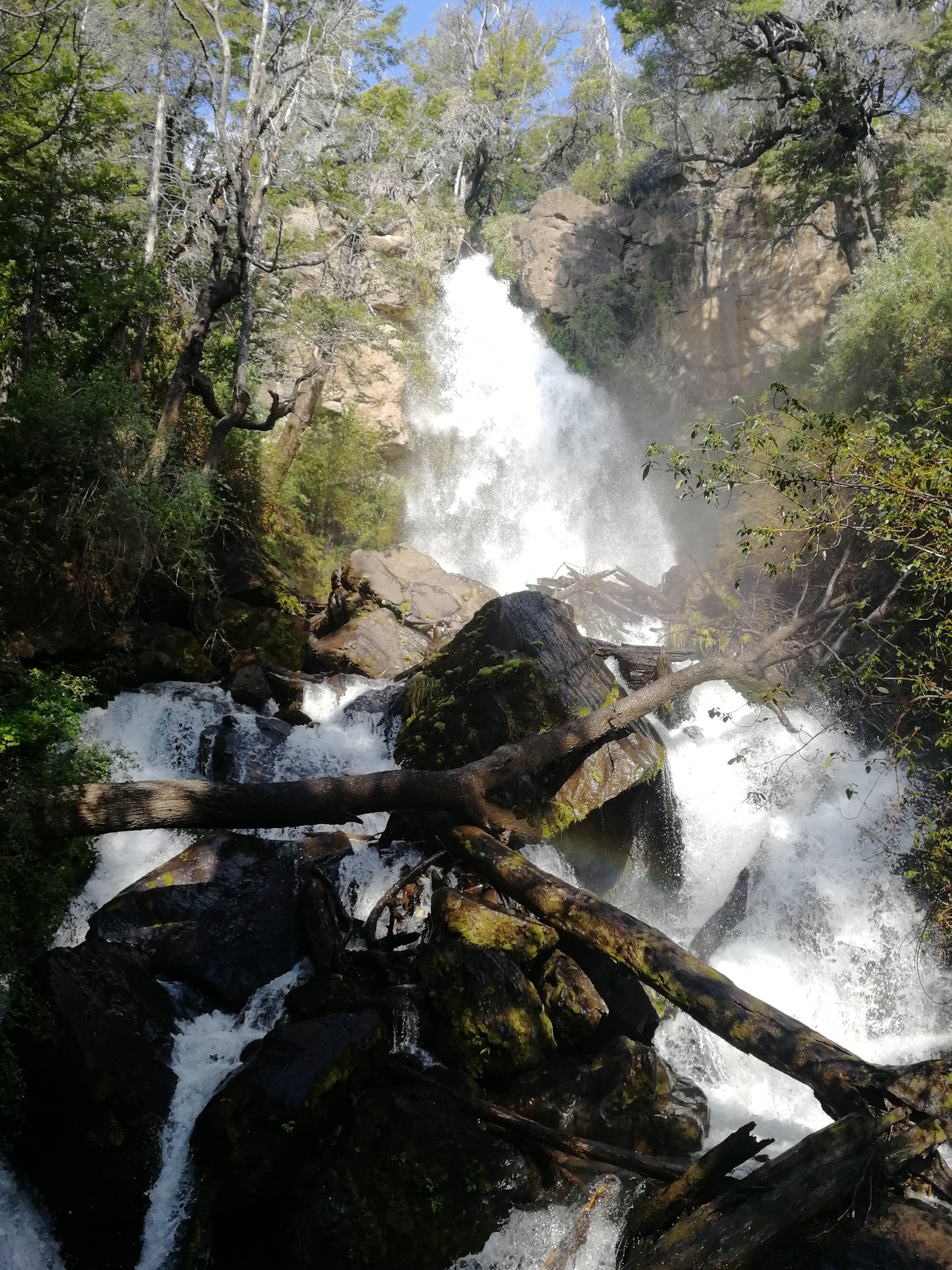 Une fois notre billet en poche, et s’être allégé de 15360 pesos (environ 260 euros), gloups, on reprend la route en direction de El Bolson, 125km au sud. La route est plutôt belle, avec pas mal de points de vue. Super agréable de conduire ici. En chemin, on fera une petite halte au parc national Nahuel Huapi, où il y avait une belle cascade, avec plein de monde, et un beau point de vue.