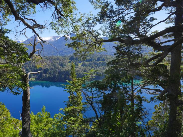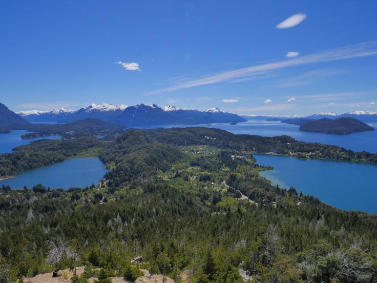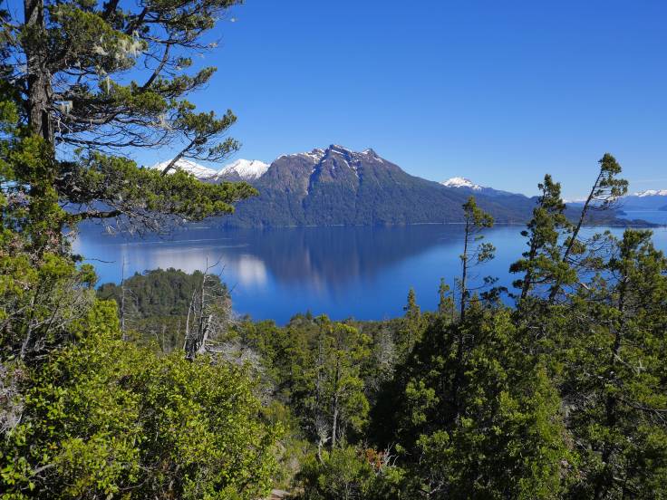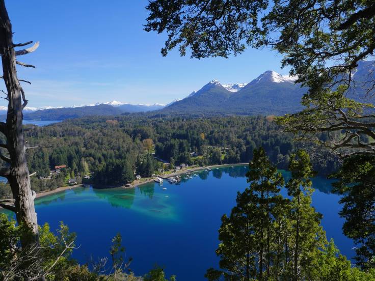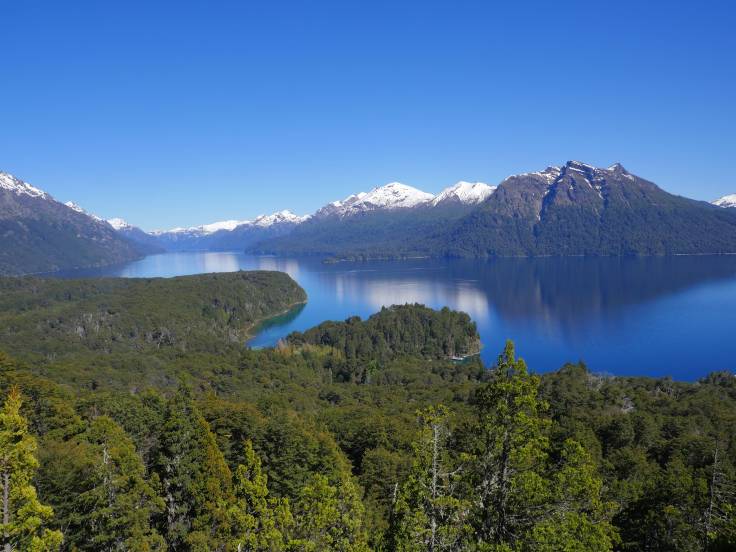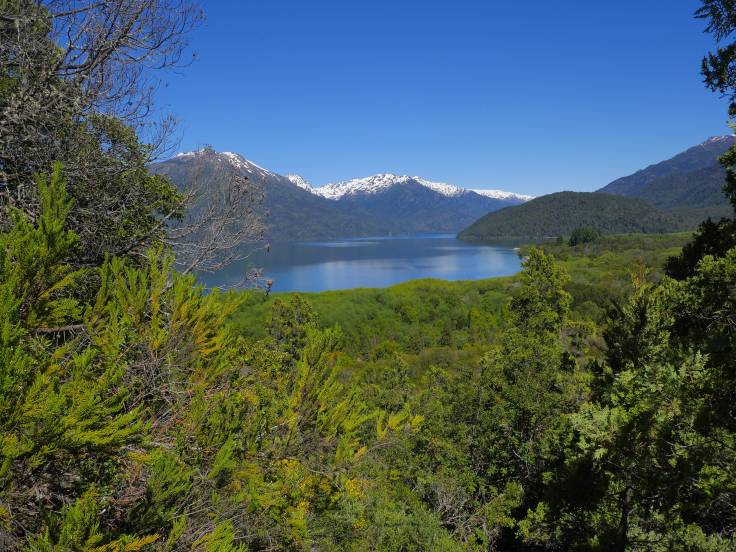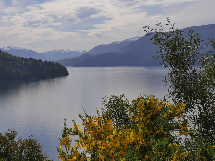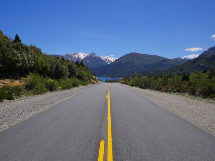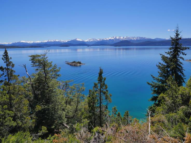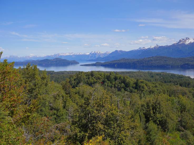 La route est plutôt sympa et offre plusieurs points de vue sur le lac Nahuel Huapi et sur les montagnes enneigées.