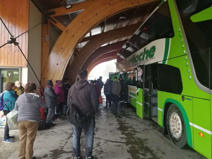 Après un énième long trajet en bus, nous voilà enfin arrivés à Bariloche ! On a dû prendre 3 bus différents. L’un de 3h pour aller de Castro à Puerto Montt. Escale de 2h et on prend un autre bus de 1h30 pour Osorno avant de terminer par un dernier de 5h pour passer la frontière et rallier Bariloche. Dernier bus ? En fait, non. Un dernier bus, que l’on a attendu 30 min dans le froid, pour arriver devant l’hôtel, Appartamento Bariloche Center. ENFIN !!