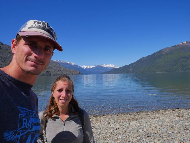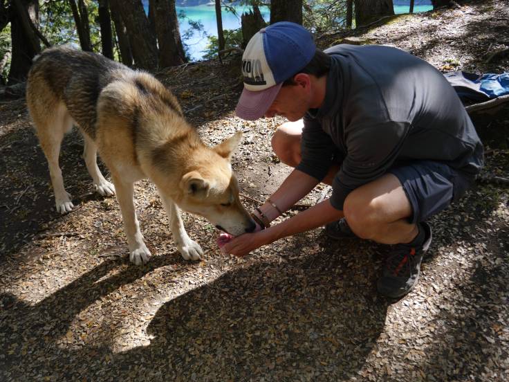 Nos deux compagnons nous ont suivi jusqu’au mirador Bahia Mansa. La vue était vraiment magnifique ! Un mixte de Philippines, avec l’eau turquoise, et de Norvège avec les petites montagnes enneigées au bord de l’eau en arrière plan.