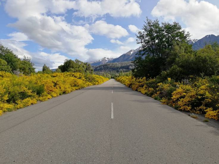 Le thème d’aujourd’hui est la voiture. On quitte El Bolson pour se rendre à Esquel, 150km plus au Sud. On empruntera une nouvelle fois la fameuse Ruta 40. Et il faut dire la vérité, elle est très belle. Une alternance de montagnes et de lacs, le tout parsemé de petites fleurs jaunes le long de la route. Autant, au nord de l’Argentine c’était de superbes routes désertiques, autant ici c’est très vert et fleurie.