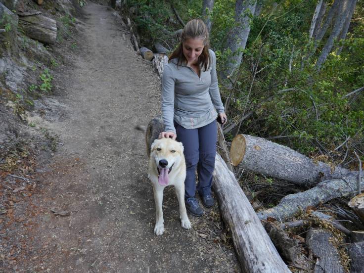 Cela débute par une longue montée dans la forêt. On a la chance d’être accompagné par deux chiens super gentils ! Le plus grand voulait jouer avec Ria mais quand il se mettait sur ses deux pattes il était plus grand qu’elle. Du coup, elle avait un peu peur… 🙂 Ils étaient en tout cas trop mignons !!!