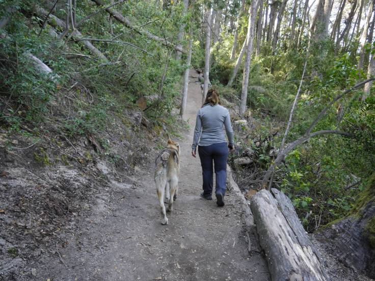 On a ensuite continué notre chemin, malheureusement sans nos deux petits toutous, dans la forêt. De la forêt, de la forêt et encore de la forêt. Pas un seul point de vue ou mirador à se mettre sous la dent jusqu’à la fin. Vu qu’il n’y avait rien à voir, cela a été l’occasion de réfléchir un peu à notre avenir.