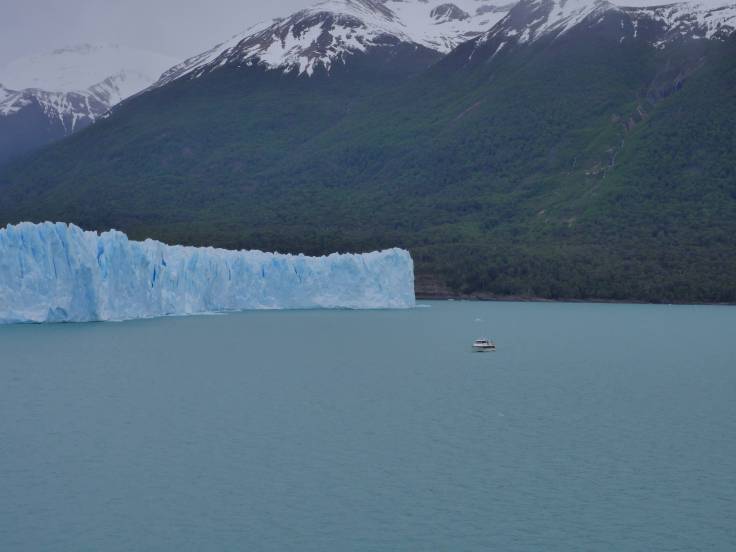 Étant donné qu’avec le réchauffement climatique on ne sait pas combien de temps le glacier existera encore, on a opté également pour une balade en bateau pour ne pas avoir de regret. Certes un peu cher, 1000 ARS (15 euros), mais ça vaut vraiment le coup car on s’approche pas mal du monstre. On n’est pas non plus au pied car avec les nombreux blocs de glaces qui tombent il est nécessaire d’avoir une distance de sécurité, mais tout de même assez proche.