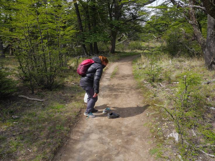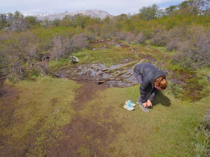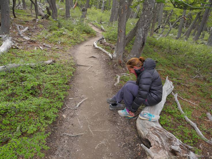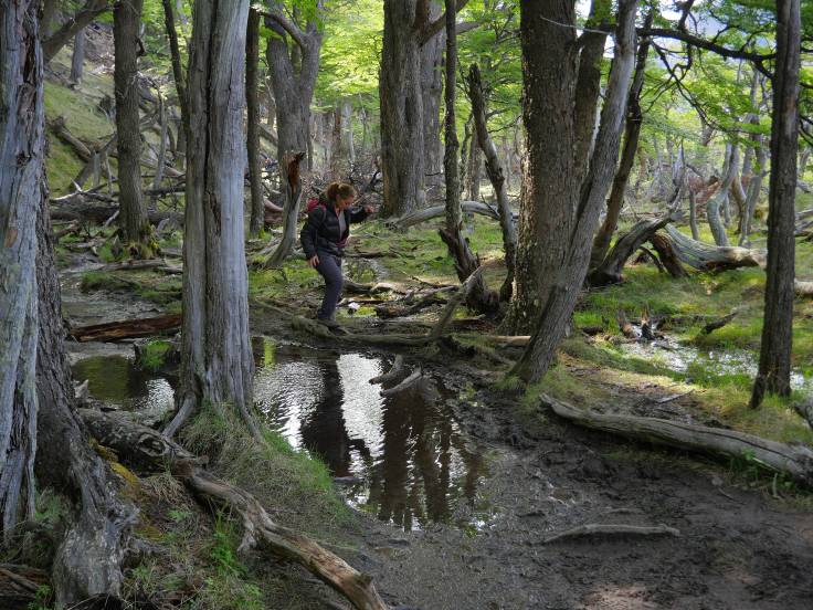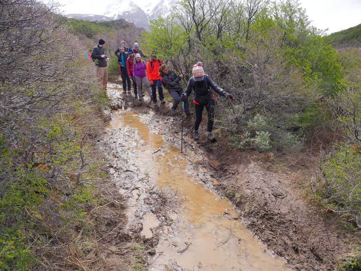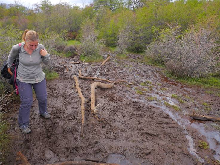 Les 9km pour rejoindre la Laguna Torre sont assez faciles avec un peu de vent, du soleil par intermittence et quelques passages un peu ennuyant. Cependant, un peu comme la veille, on aura le droit à notre portion de boue à traverser. Cette fois, ça sera dans la forêt. J’étais à l’affût mais malheureusement on n’aura pas de cliché de Ria en train de tomber/glisser. Dommage.