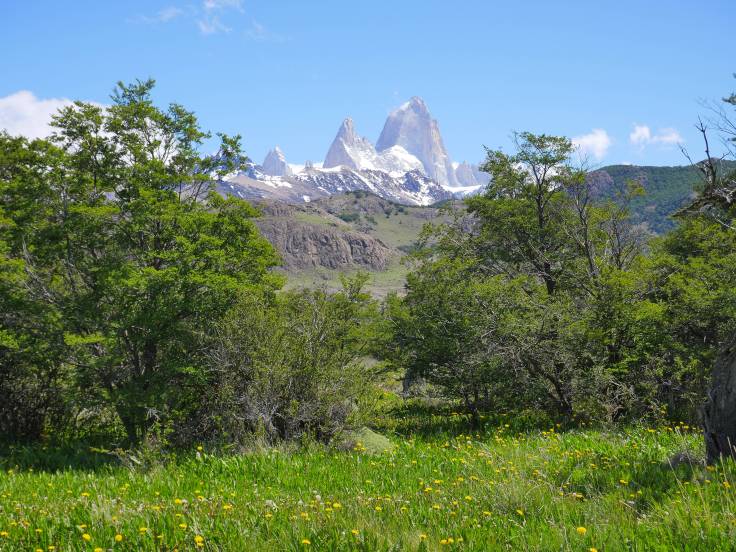 Une excellente nuit de sommeil dans notre logement, et la première chose que l’on fait c’est scruter la météo. Cette ville est le point de départ de nombreuses randonnées, du coup sous la pluie ou un ciel gris, l’intérêt est plus limité. Finalement, on a de la chance, il est prévu un grand soleil ! On en profite donc pour faire la randonnée qui mène au Fitz Roy ! Mondialement connue, cette montagne, qui culmine à 3405m d’altitude, est apparemment l’un des sommets les plus difficiles à escalader au monde, car le granite est extrêmement compact. Le sommet a été atteint pour la première fois en 1952 par deux alpinistes français, Lionel Terray et Guido Magnone. Cette montagne est un gigantesque monolithe de granite ayant une forme pyramidale, qui a été sculptée par les vents violents, la glace et la neige.