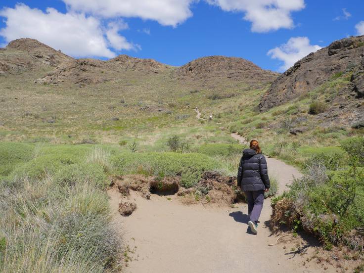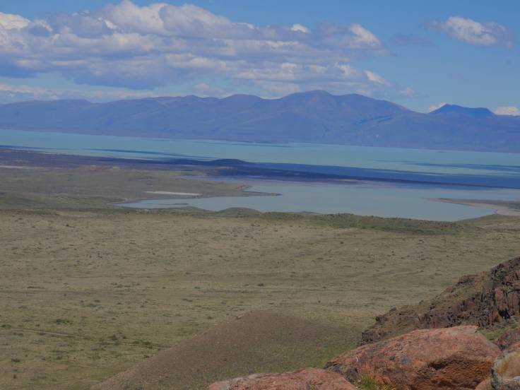 Ensuite, on marche un peu pour rejoindre le mirador Las Aguilas. Cette fois, on tourne le dos à la ville et on peut voir le lac Viedma entouré d’un désert de montagnes.