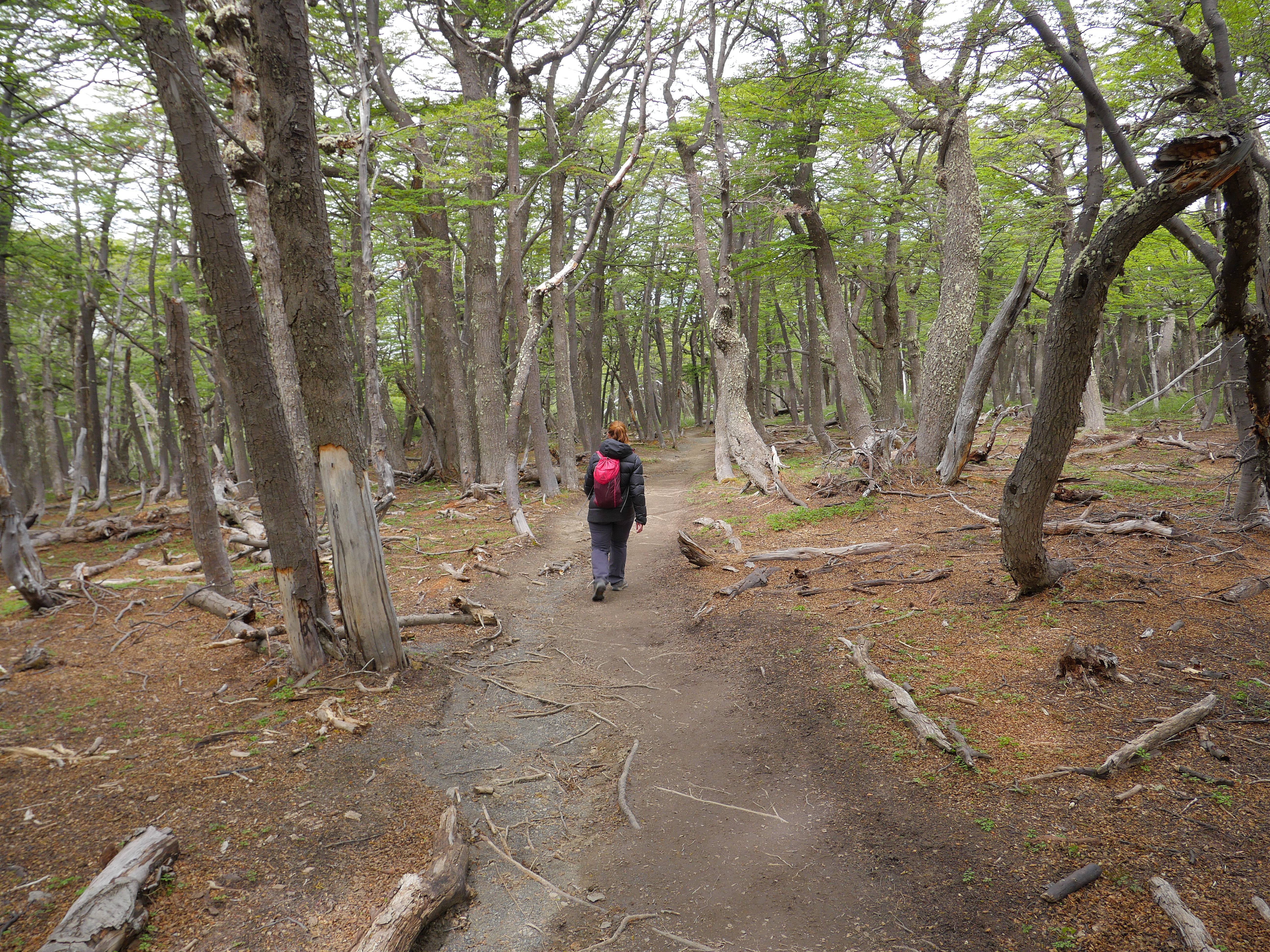 Le chemin est vallonné, en forêt, pendant environ 3km, mais sans grande difficulté. Ensuite, c’est plat, plat, plat dans les plaines, mais avec une vue sur le Cerro Torre. Enfin presque car il y a des satanés nuages juste dessus qui ne veulent pas bouger d’un pouce.