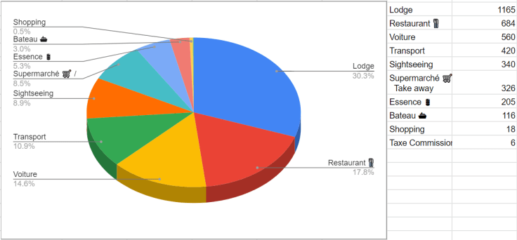 A coup sûr l’une des mauvaises surprises de ce tour du monde ! Qu’est-ce que ça coûte cher le Chili ! On avait initialement prévu un budget de 40e/personne/jour. On s’en sort finalement avec 51e/personne/jour ! Une sacrée différence qui plombe un peu notre budget général ! En ce qui concerne les logements, la zone Pucon/Puerto Varas/île Chiloe a été la plus abordable (entre 20 et 30 euros/nuit). Par contre au Nord (San Pedro de Atacama) et au Sud (Puerto Natales), les prix ont flambés (entre 35 et 55 euros/nuit) ! Par contre, on n’a pas pris de dortoir mais uniquement des chambres doubles. Les transports également ont été très cher. En moyenne, 55 euros/jour pour la location d’une voiture ! Les restaurants ne sont pas épargnés non plus, mais cette fois-ci c’est dans tout le pays. Entre 25 et 35 euros/repas. Autant dire qu’on ne mangeait qu’une seule fois par jour ! Mais bon, on se faisait plaisir aussi, on choisissait rarement des boui-boui et on préférait manger du poisson (ce qui coûte plus cher). Par ailleurs, on avait retiré pas mal d’argent liquide au nord du Chili à Calama, dans la Scotiabank, car elle ne prenait aucun frais avec la Visa. Au final, on s’en tire bien évidemment avec un solde négatif par rapport à nos prévisions : moins 400 euros pour nous deux.
