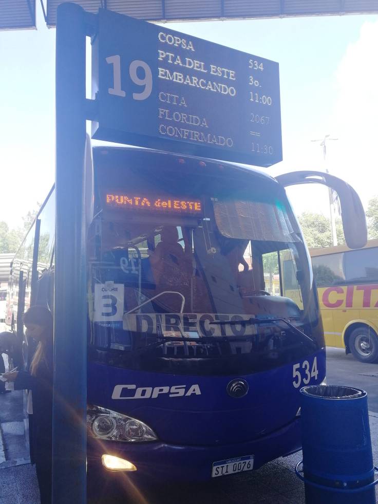 - Bus de Punta del Este à Montevideo avec COPSA à 344 UYU acheté au terminal de bus. 2h de trajet avec wifi