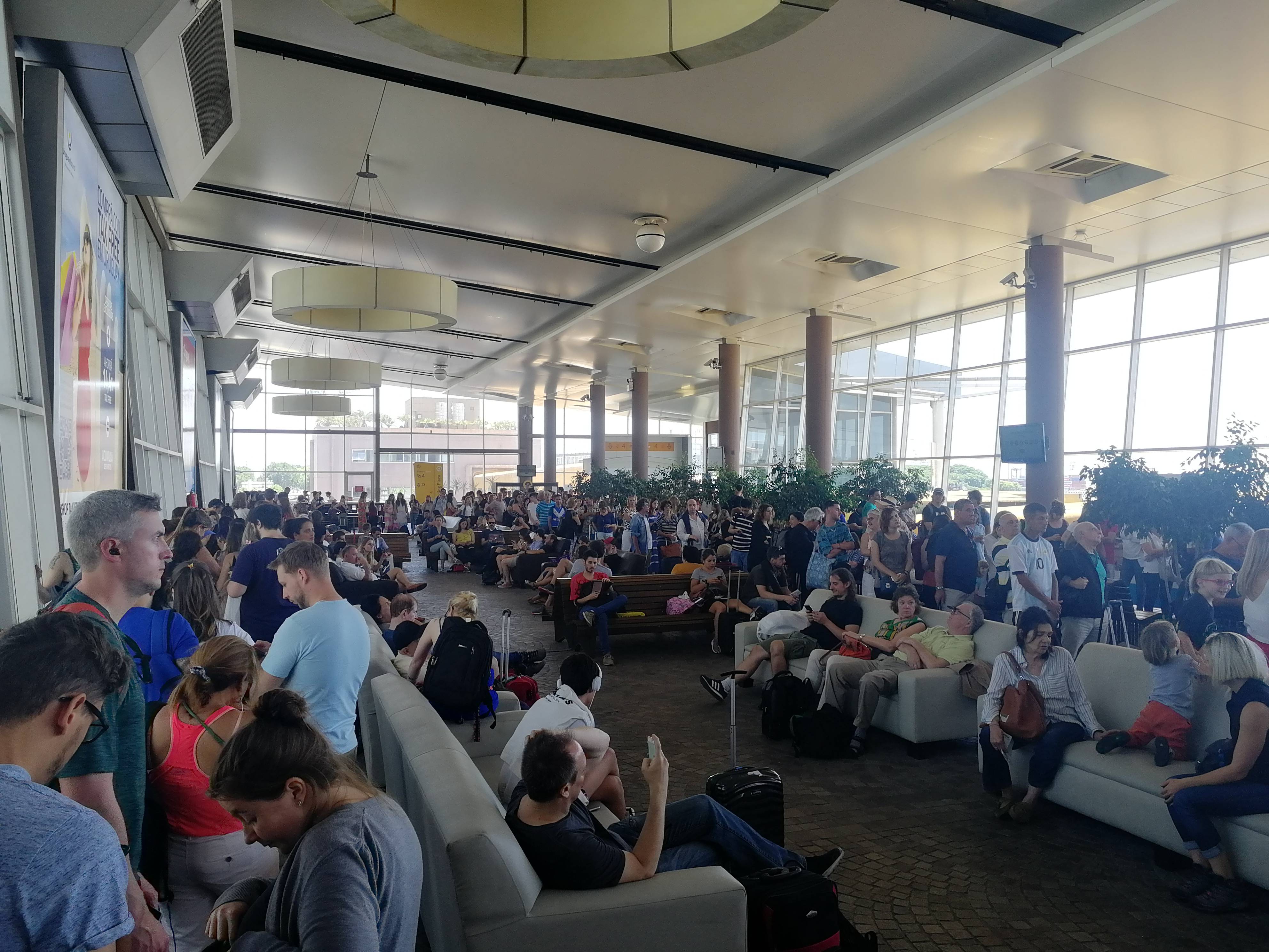 C’est après une petite session running autour du Lago del Rosedal, que l’on ira prendre le ferry, de la compagnie Buquebus, en direction de Colonial del Sacramento, en Uruguay ! Une fois le check-in et le contrôle d’immigration Argentine-Uruguay effectués, nous voilà dans la salle d’embarquement… Il y a un monde FOU ! Environ 400 ou 500 personnes ! On a rarement vue une file d’attente aussi longue.